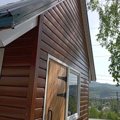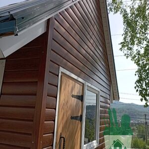 В наружной отделке использованы природные материалы: дерево, черепица.