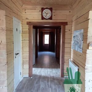 Внутри дизайнерская отделка деревом неброских светлых тонов.